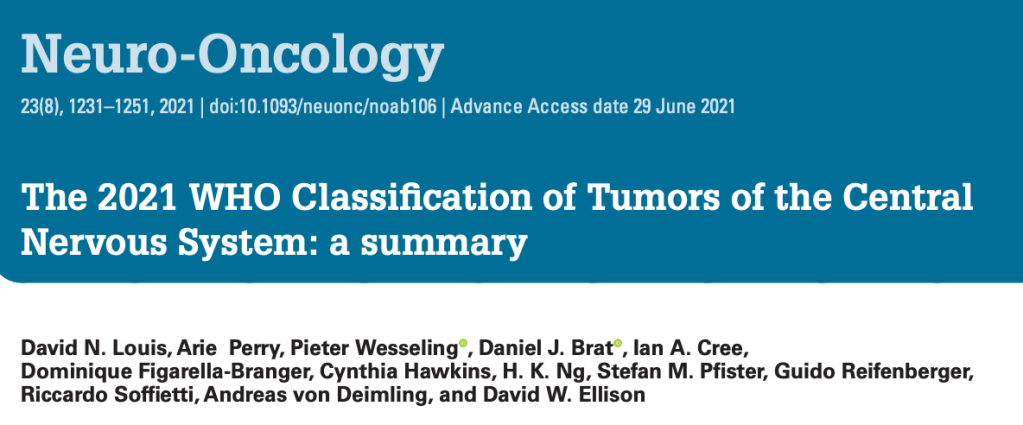The changes in CNS tumor classification have been impacted by the improvements in novel diagnostic technologies and the recommendations of the Consortium to Inform Molecular and Practical Approaches to CNS Tumor Taxonomy (clMPACT-NOW).