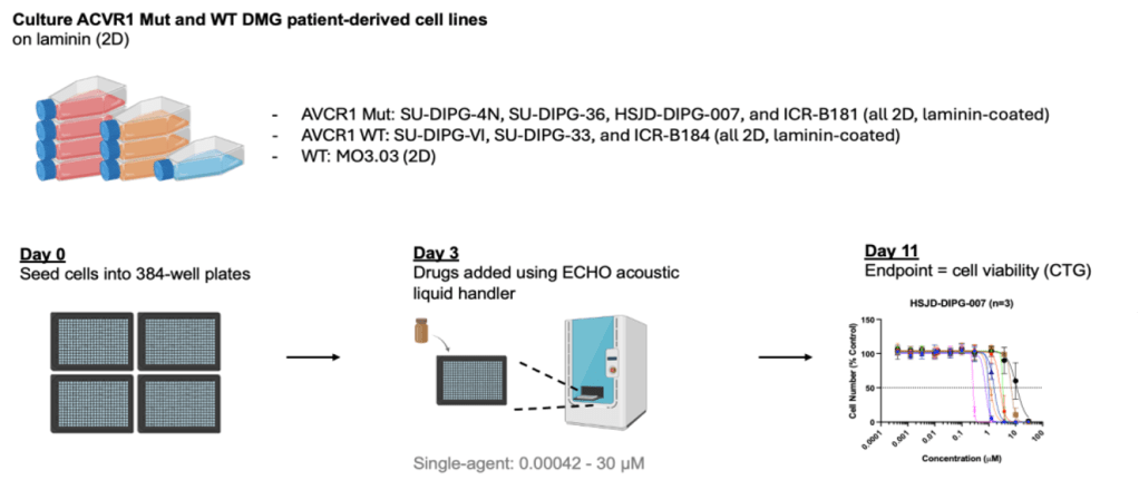 – ACVR1mut: SU-DIPG-4N, SU-DIPG-36, HSJD-DIPG-007, and ICR-B181 (all 2D, laminin-coated)