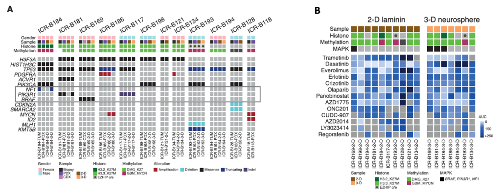 Utilising patient-derived models (in vitro and in vivo) from phase II co-clinical trial of patients with DIPG from United Kingdom enrolled in BIOMEDE, Izquierdo et al. investigated specific genetic dependencies associated with response to trametinib in vitro, explored mechanisms of acquired resistance that emerge to single-agent targeted therapy, and presented rational drug combinations that may circumvent this in future clinical trials.